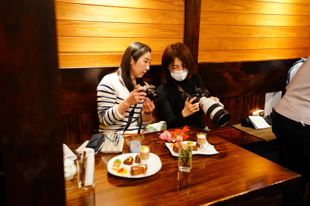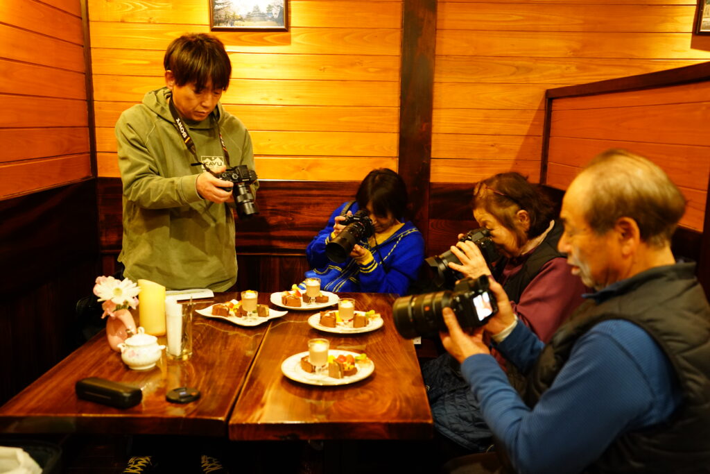 はじめに、テーブルフォトでのコツ、構図や設定などの座学を少し行い、