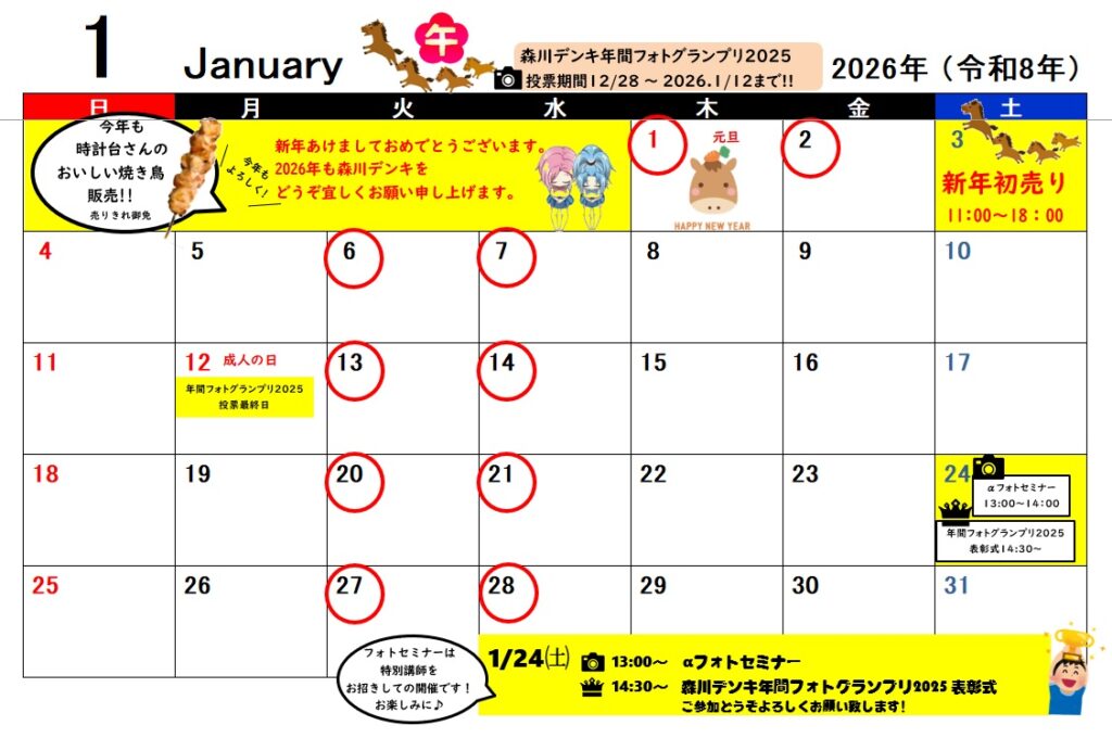 2018年1月1日 新年あけましておめでとうございます! STACC MORIKAWA お知らせ, イベント告知, イベント情報 0 Comments 旧年中は大変お世話になりました。 本年もどうぞ変わらぬご愛顧のほどよろしくお願いいたします。 新年初売りは3日12:00から! お得な商品、楽しいイベントをご用意してお待ちいたしております。 イベントの福引や手帳プレゼントなどは先着早い者勝ちですので品切れの際はご容赦くださいませ・・・